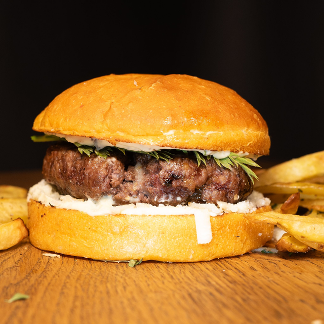 Pain Pain maison du Zoo au sésame et pétales de maïs croustillants, 100% pur bœuf suisse (150 gr), sauce pesto fait maison et mayo*, Grana Padano, salades